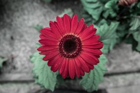 Red Gerber with Leaves photo - Donald Tong Single Gerber photo - Lerkrat Tangsri
