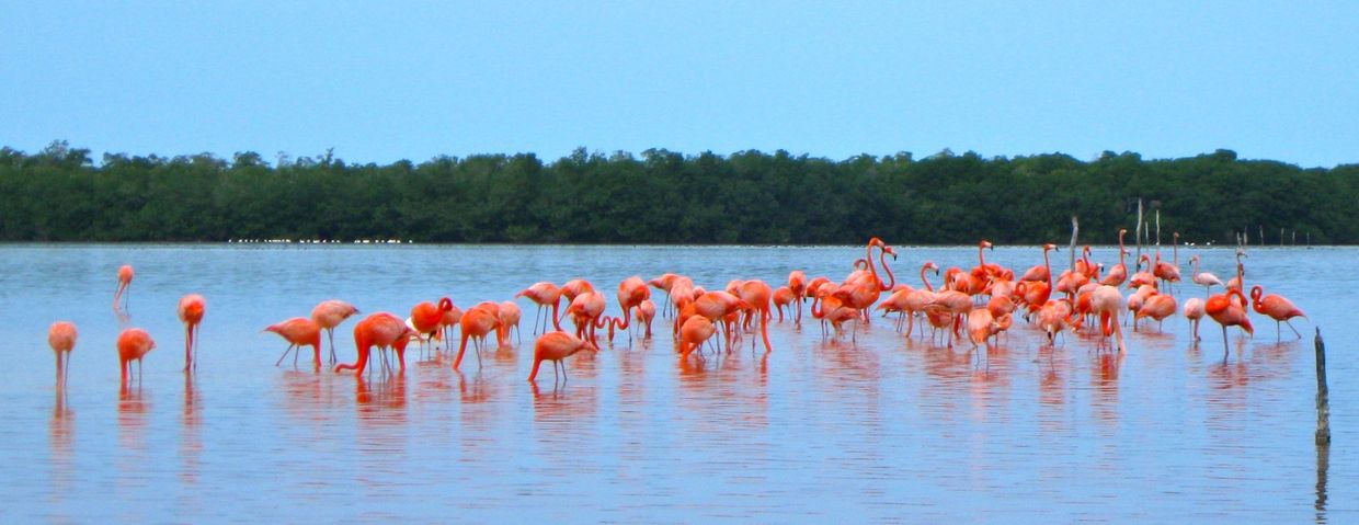 Wading Flamingo Flock photo - personal photo